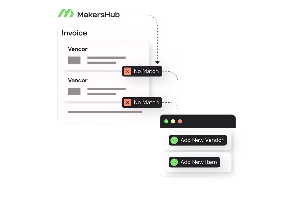 MakersHub recognizes when a vendor or item doesn’t exist in NetSuite. Add it instantly, without duplicates, and keep your books accurate.